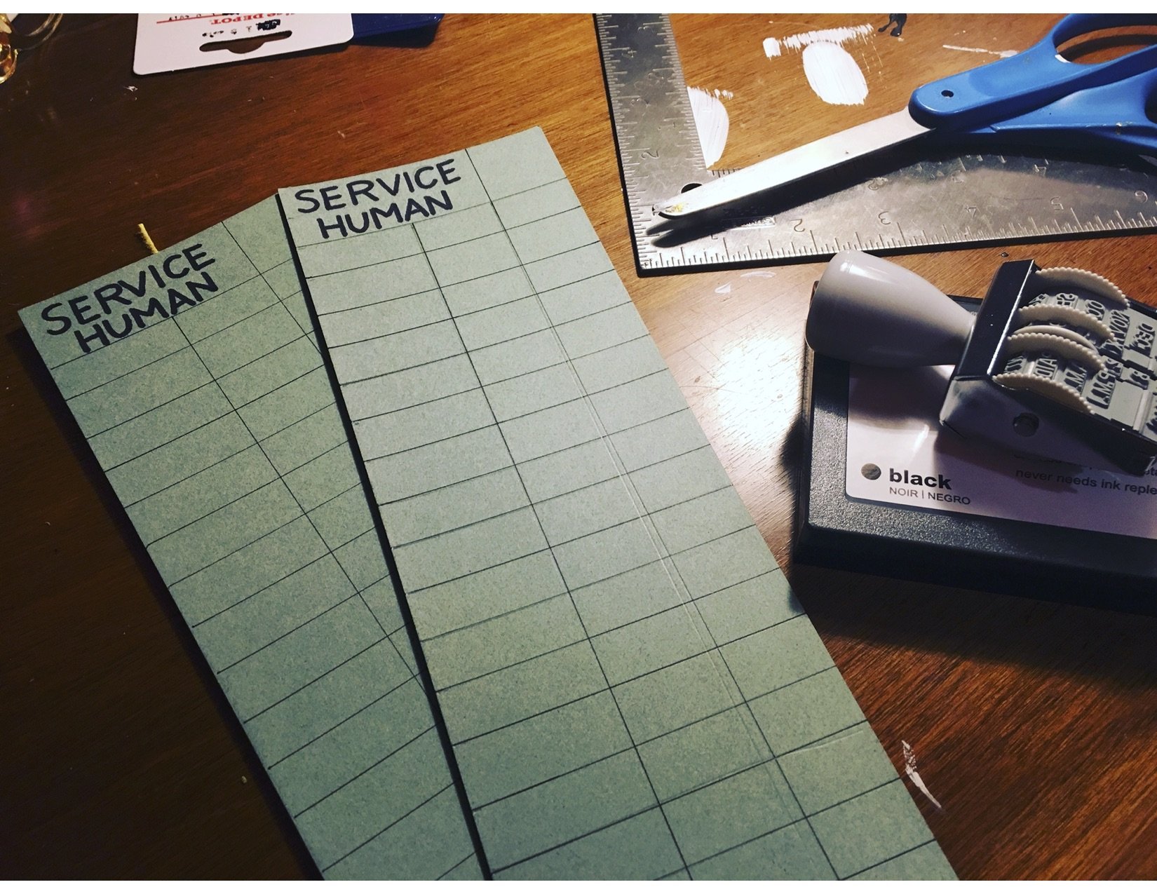 Fill out the form below to be mailed an official SERVICE HUMAN timecard and mission statement.
